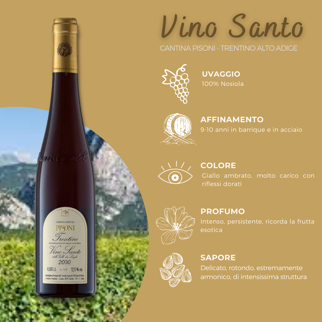 Per chiudere in bellezza prova il vino santo Trentino di Pisoni con abbinato il Gorgonzola Piccante Dop a 8€